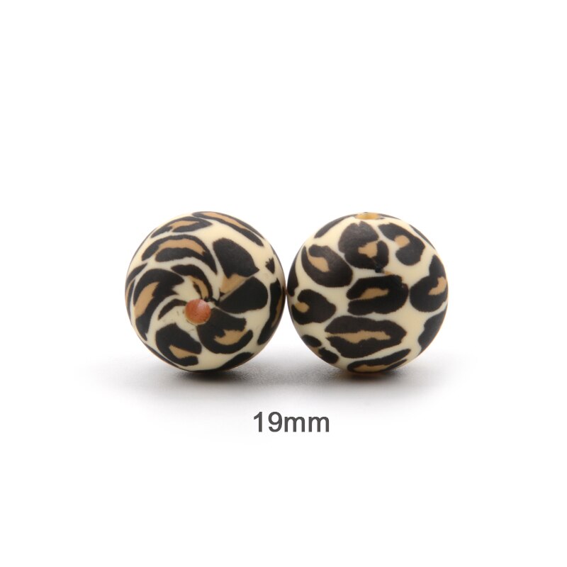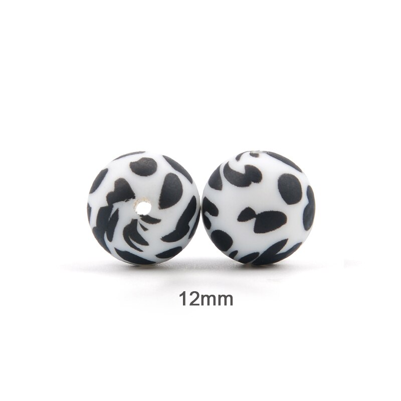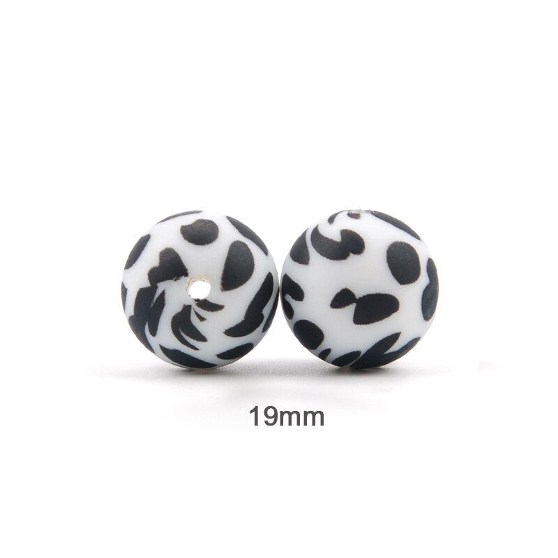 Perles de dentition en silicone, de 12/15/19mm pour bébé, ensemble de 10 pièces pour bricolage, boules imprimées à motifs dalmatien, couleurs bariolées et léopard sans BPA, pince de tétine gratuite à fabriquer